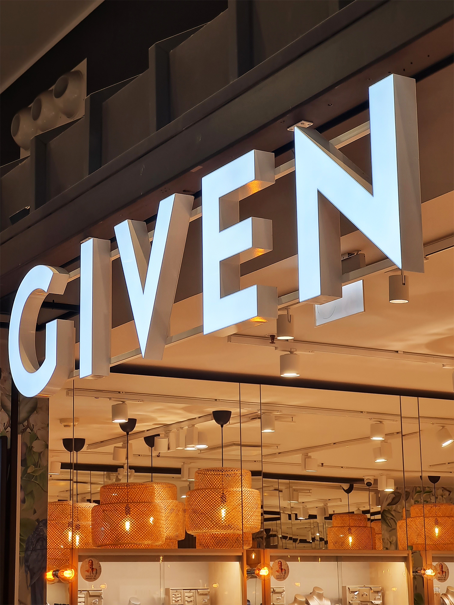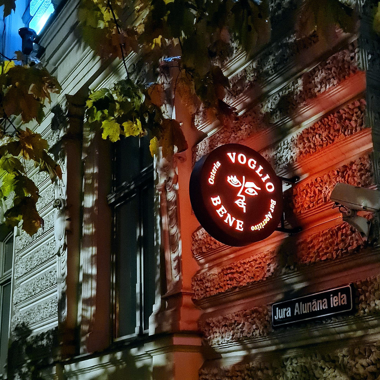Izkārtne - gaismas kaste, telpiskie gaismas burti. Restorāns Voglio Bene